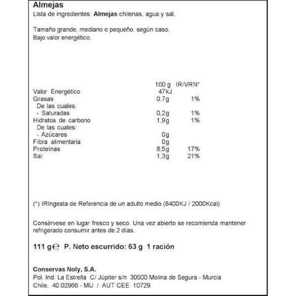 Sé el primero en valorar “Almejas Chilenas Reina NOLY 111g” Cancelar la respuesta