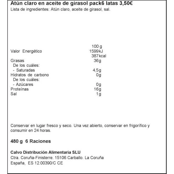 Atún claro, aceite de girasol y sal.