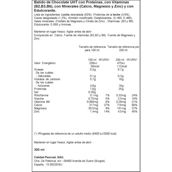 Batido Proteínas Sabor Chocolate PASCUAL 330 Ml.