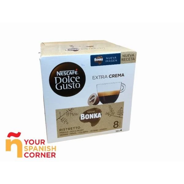 NESCAFÉ® Dolce Gusto® Ristretto Bonka destaca por su potente temperamento y su rica combinación de matices. Saborea su mezcla de arábicas y robustas con un tostado perfecto y un aroma envolvente desde el primer sorbo de café.