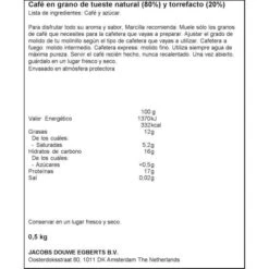 - Especificaciones: Café en grano de tueste natural (80%) y torrefacto (20%).