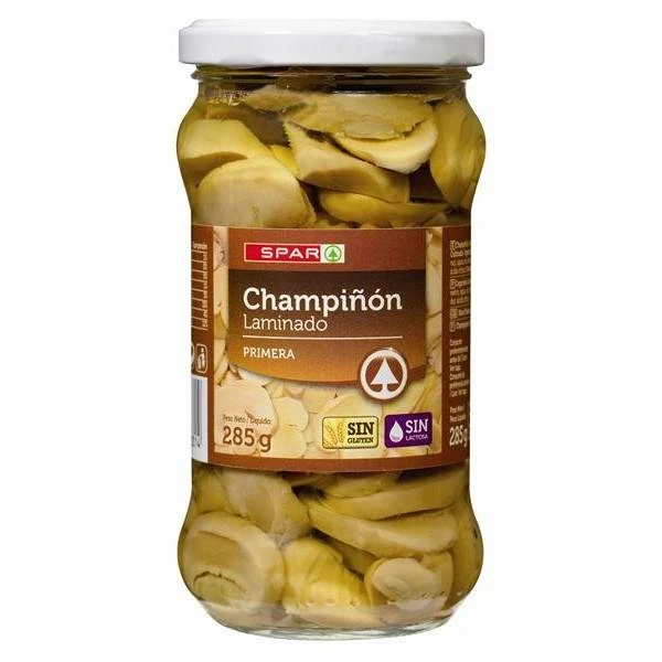 Compra estos champiñones laminados para preparar deliciosas pizzas, salteados de verduras u otras recetas. Es un producto vegetal de España, de muy buena calidad.