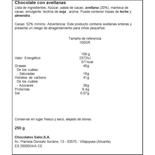 Valor presenta esta barra de chocolate negro con deliciosas avellanas enteras mediterráneas; un chocolate equilibrado que te hará disfrutar en cada momento.