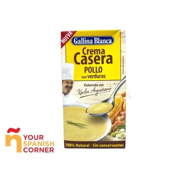 Esta crema casera de pollo con verduras de la marca Gallina Blanca es 100% natural, sin conservantes. Está lista para tomar, solamente hay que calentar la crema en una olla o en microondas.