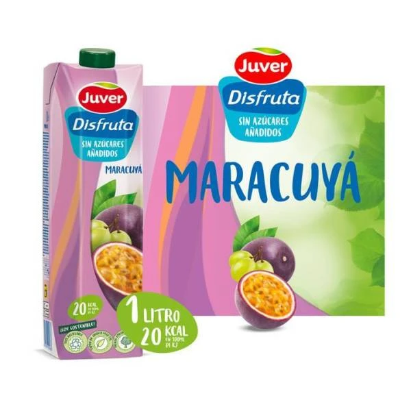 Disfruta en tus desayunos de un zumo de uva y maracuyá sin azúcares añadidos, una forma sana de empezar el día. Juver elabora los mejores zumos y néctares para familias como la tuya.