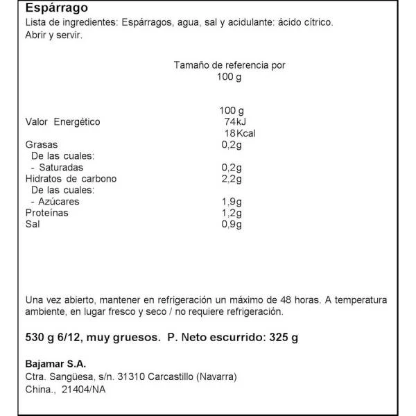 Espárragos, agua, sal y acidulante: ácido cítrico.