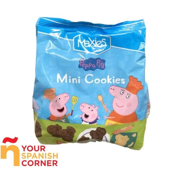 Divertidas galletas de chocolate con dibujos de Pepa Pig. Puedes comprar este producto para las meriendas de tus hijos en tu supermercado online Your Spanish Corner.