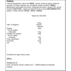 Harina de trigo, azúcar, aceite de palma, jarabe de glucosa y fructosa, dextrosa, sal, emulgente: lecitina (contine trigo), gasificantes (carbonatos de amonio, carbonatos de sodio), canela 0,2%, aroma (contiene sulfitos), agente de tratamiento de la harina (metabisulfito sódico). Puede contener leche, soja, huevo.