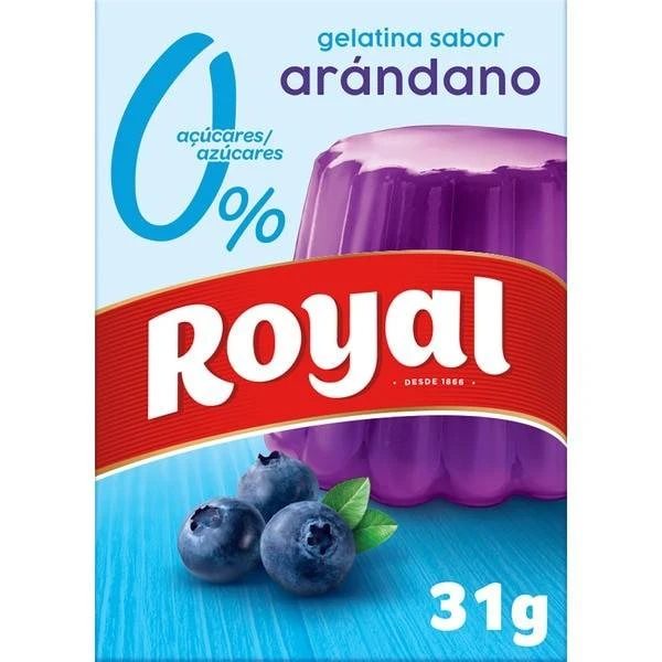 Prueba este sabor nuevo de los preparados de gelatina Royal. Sabor a arándanos y sin azúcar.
