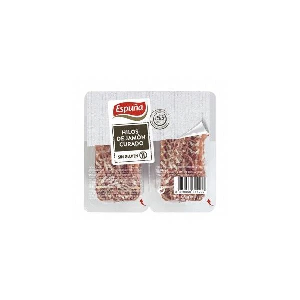 El jamón serrano ha sido cortado en pequeñas tiras para usarlos como aperitivos o para agregarlos a guisos tradicionales como el cocido.