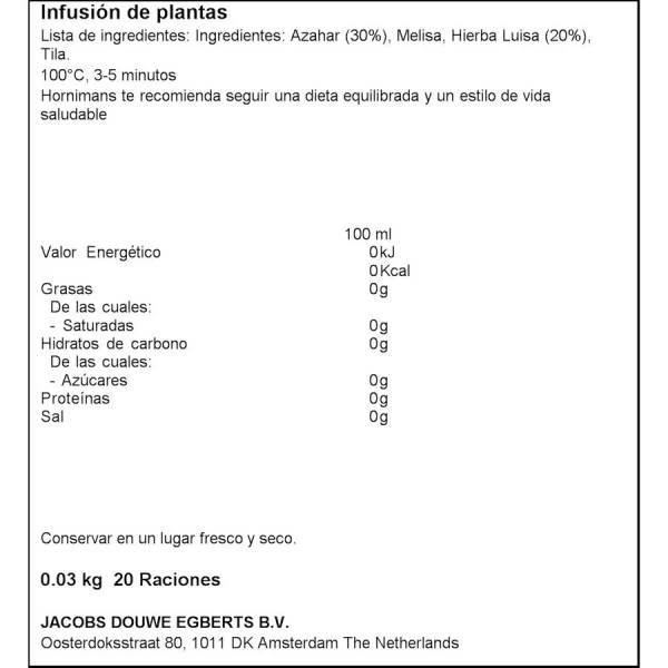 Infusión de Hornimans ideal para relajarse, elaborada a partir de flores de azahar, melisa y tila.
