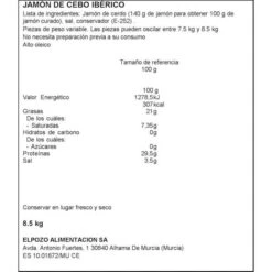 El jamón ibérico procede del cerdo ibérico alimentado con productos naturales como la bellota. Su proceso de elaboración del jamón es un trabajo artesanal, a mano, mirando uno a uno,haciendo la cala uno a uno, colgando y descolgando en los distintos procesos uno a uno.