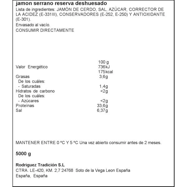 Jamón Serrano RESERVA Deshuesado BEDUNIA 6 Kg. Aproximado