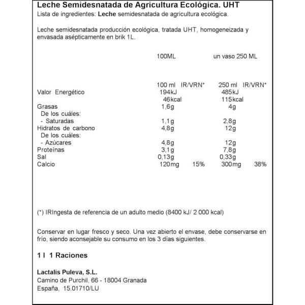 Leche semidesnatada de agricultura ecológica.