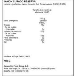 - Jam贸n Reserva 4 Estaciones (7 kg):