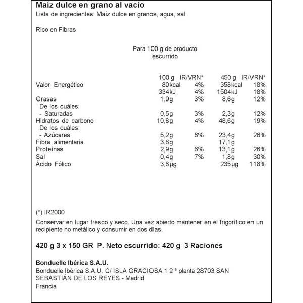 Un maíz elaborado listo para echar a todo tipo de platos, sin azúcares añadidos.