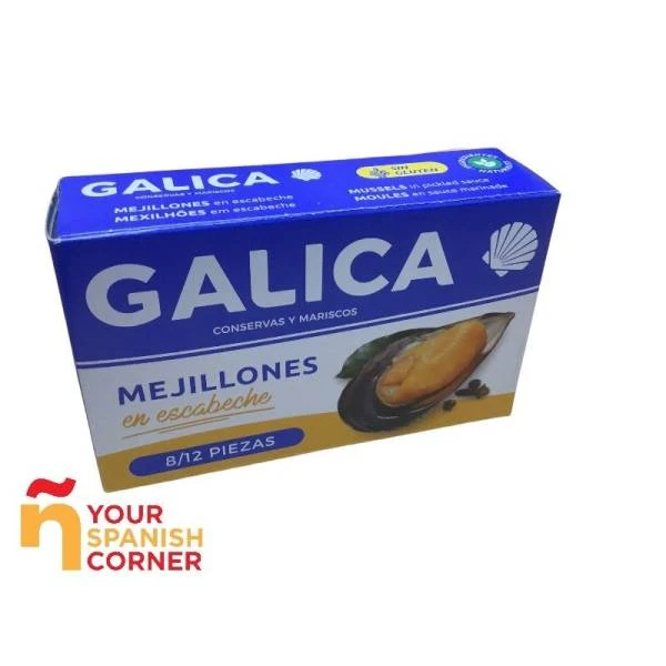 Para disfrutar de unos buenos aperitivos puede comprar estas conservas de marisco. Se trata de mejillones en escabeche, originales de Galicia. Un producto del mar de muy buena calidad y sabor.