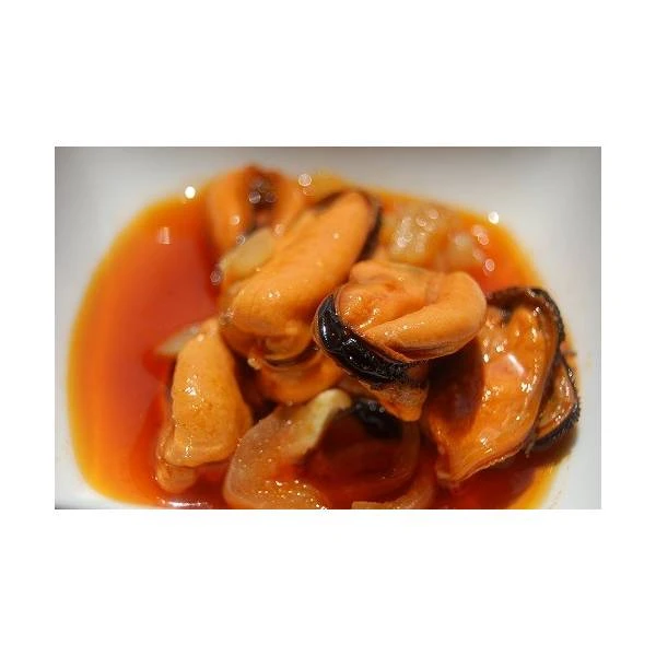 Mejillones, aceite de girasol, vinagre, especias y sal.