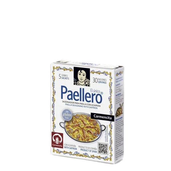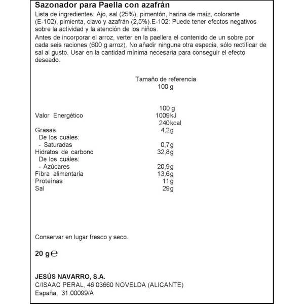 Este producto contiene una mezcla de especias y azafrán, ideal para preparar una deliciosa Paella, una receta típica de España.