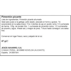 Pimentón picante para preparar deliciosas comidas españolas con un toque picante, como el Pulpo a la Gallega. Este producto de Carmencita se presenta en un bote de cristal pequeño, de fácil manejo.