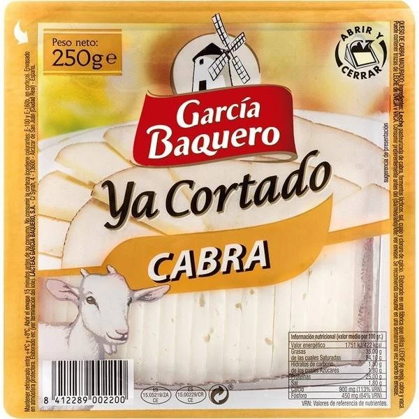 García Baquero elabora este queso con auténtica leche de cabra, el cual se caracteriza por su textura suave y delicioso sabor. Este empaque contiene 250 gramos de este queso español que viene ya cortado, listo para su consumo.