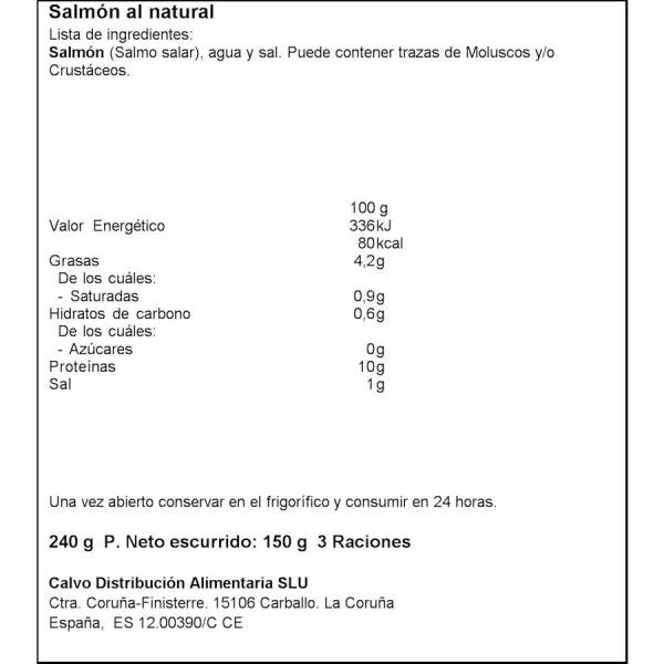 CALVO, salmón al natural con alto contenido en proteínas y omega-3.