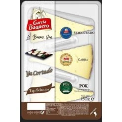 García Baquero ha escogido esta selección de quesos (semicurado mezcla, de cabra y de oveja) para que prepares unas especiales tablas de queso, las cuales puedes acompañar de un buen jamón ibérico y unas copitas de vino español.