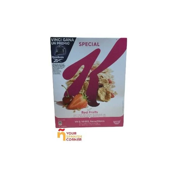 Arroz (44%), trigo integral (35%), azúcar, cebada (4,5%), frutas liofilizadas (4,5%)(fresa, cereza), sal, harina de malta de cebada, extracto de malta de cebada. Vitaminas y minerales: niacina, hierro, zinc riboflavina, tiamina, vitamina B6, ácido fólico, vitamina D, vitamina B12. Puede contener gluten de otros cereales, frutos secos.
