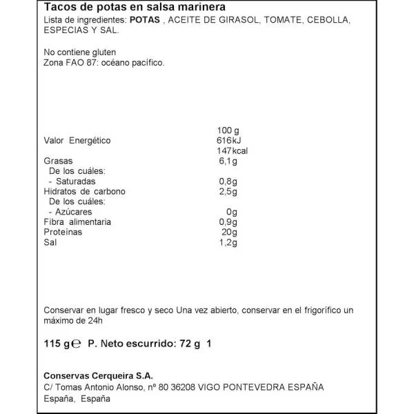 Trozos de pota preparados en una rica salsa marinera.