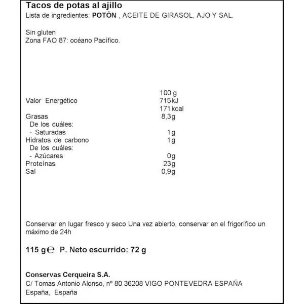 Potón del pacífico, aceite de girasol, ajo, sal.