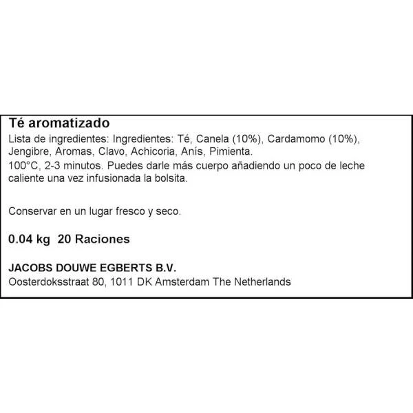 Té, canela, cardamomo, jengibre, clavo, achicoria, anís, pimienta.