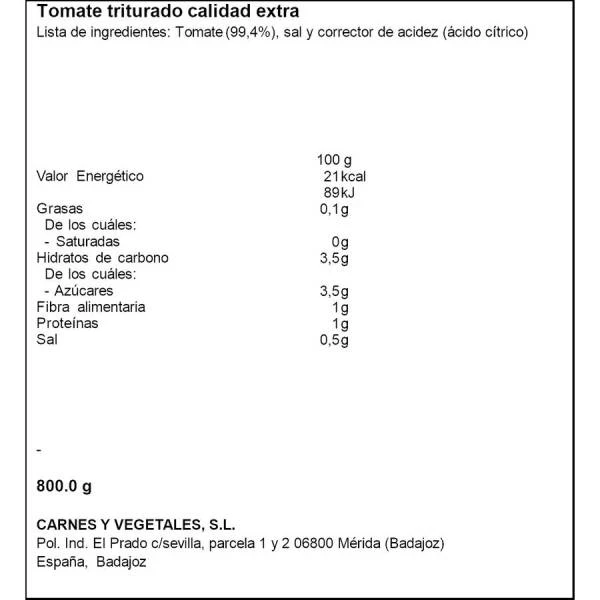 Tomate (99.4%), sal y corrector de acidez (ácido cítrico).