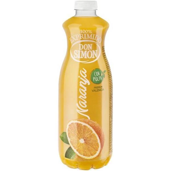 Disfruta tus mañanas con este zumo de naranja exprimido 100% natural de Don Simon. Perfecto para mantener una dieta equilibrada.